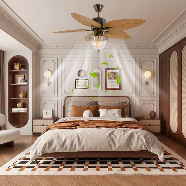 52 in. Indoor Bronze Tropical Style 5 Palm Leaf Blades Reversible Ceiling Fan Light With Remote Control