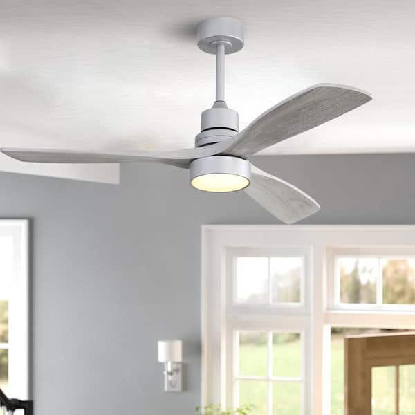 52 in. Indoor Gray Ceiling Fan Integrated LED Lighting with Remote Control and Adjustable Helght