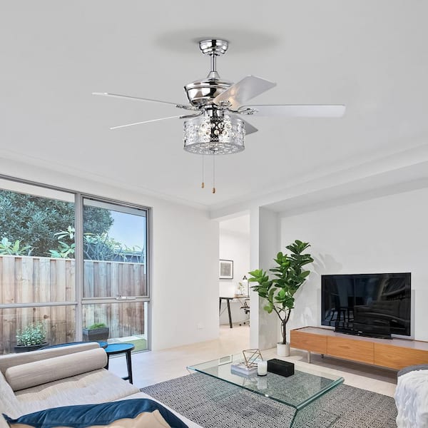 52 in. Indoor/Outdoor Chrome Ceiling Fan with Lights and 5 Blades Reversible Motor Fan Light with Pull Chain Control