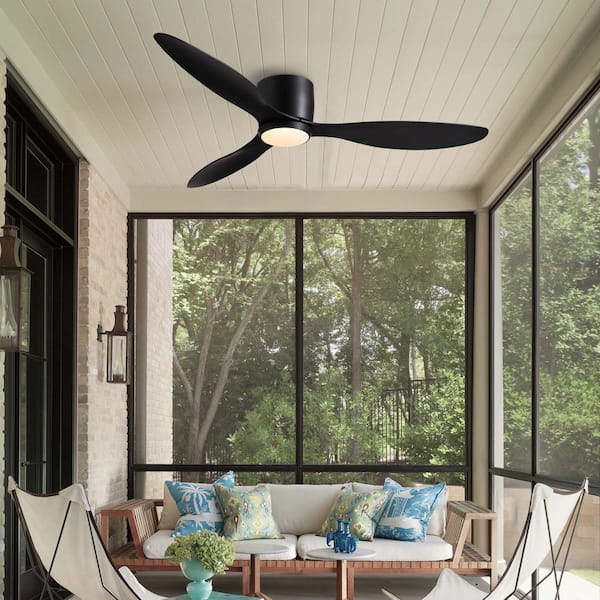 52 in. Indoor Smart Low Profile 3 Blades Black Ceiling Fans with Light Dimmable Led Lights with Remote Included