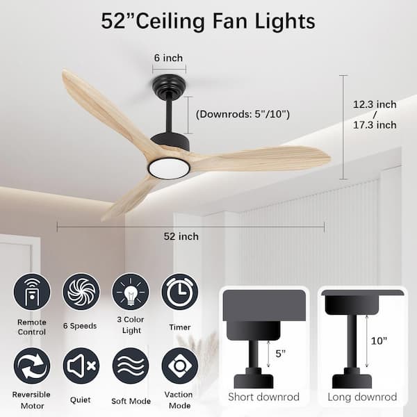 52 in. Integrated LED Indoor Matte Black and Mahogany Finished Ceiling Fan with Light and Remote Control