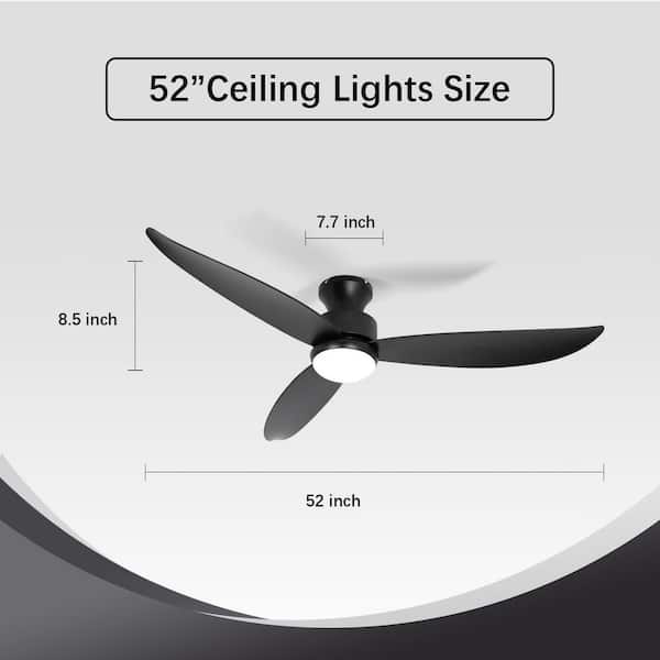 52 in. Integrated LED Indoor Solid Outdoor Black ABS Finish Ceiling Fan with Remote Control and 1-Light
