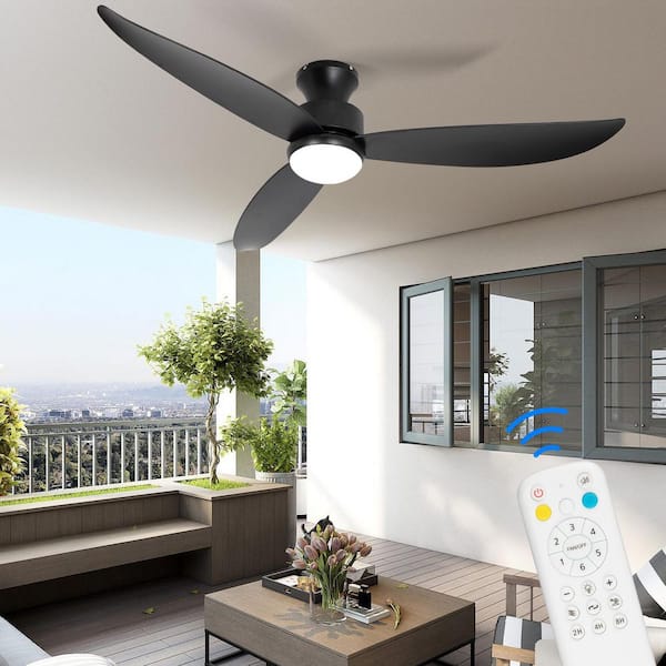 52 in. Integrated LED Indoor Solid Outdoor Black ABS Finish Ceiling Fan with Remote Control and 1-Light