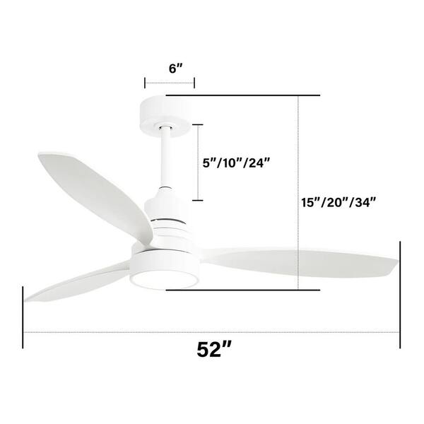 52 in. Integrated LED Wooden Indoor White Ceiling Fan Lighting with 3 Solid Wood Blades and Remote Control