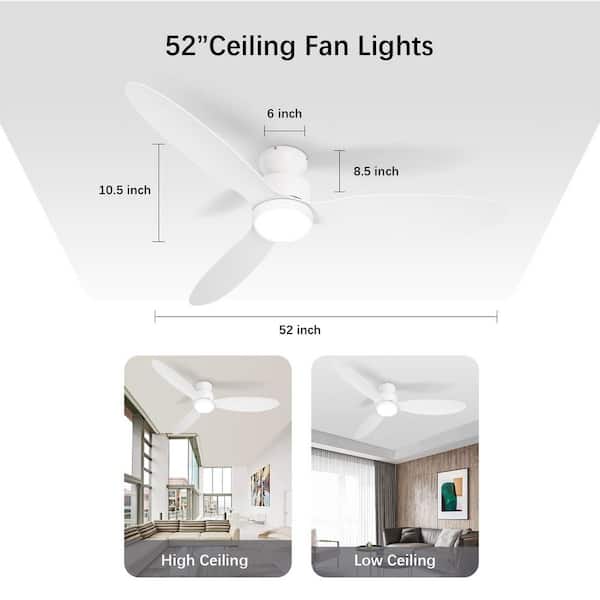 52 in. LED Indoor Outdoor White ABS Finish Ceiling Fan with 1-Light and Remote Control