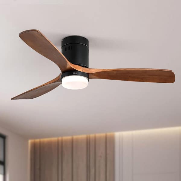52 in. Smart Indoor Walnut Ceiling Fan with Light and Remote Control Reversible 3-Solid Wood Blades LED Fan Light