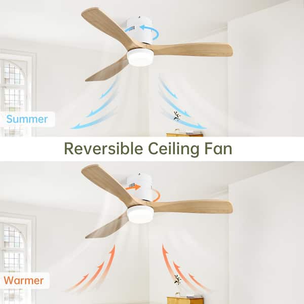 52 in. Smart Indoor White Ceiling Fan with Light and Remote Control Reversible 3-Solid Wood Blades LED Fan Light