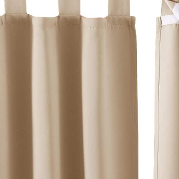 52 in. x 84 in. Outdoor Patio Curtains Waterproof Room Darkening Drapes Detachable Sticky Tab Biscotti Beige (2-Panel)
