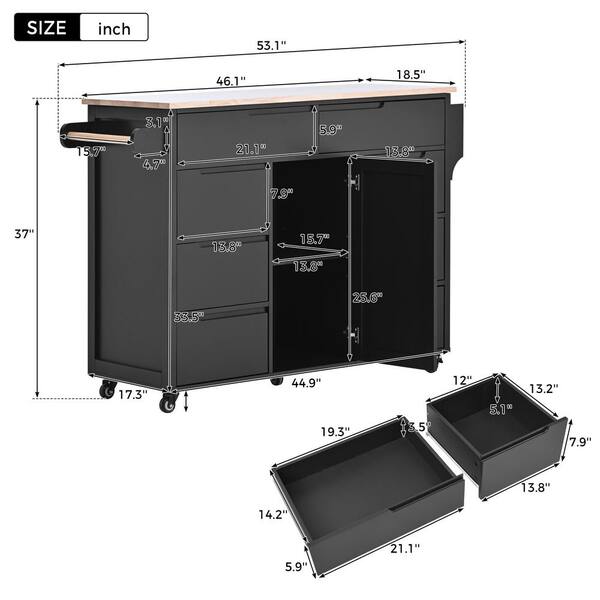 53.15 in. W x 18.5 in. D x 37 in. H Bathroom Black Linen Cabinet