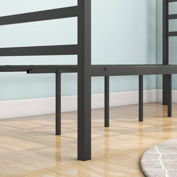 54.72 in. W Black Metal Framed Canopy Platform Bed with Built in Headboard No Box Spring Needed Classic Design Full