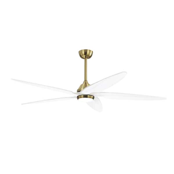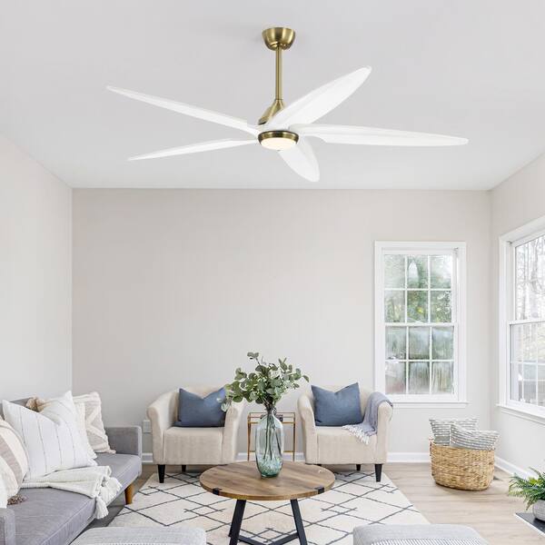 54 in. White and Gold Indoor 5-Solid Wood Blades LED Ceiling Fan with Remote and 2 Downrods