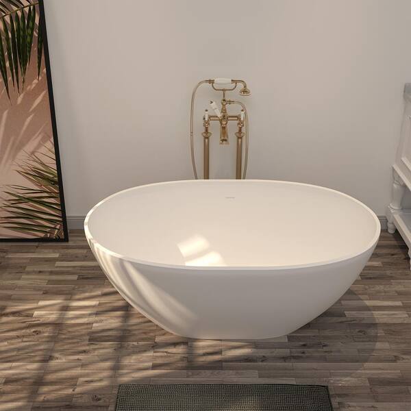55.02 in. x 29.48 in. Solid Surface Freestanding Soaking Bathtub with Center Drain in Matte White