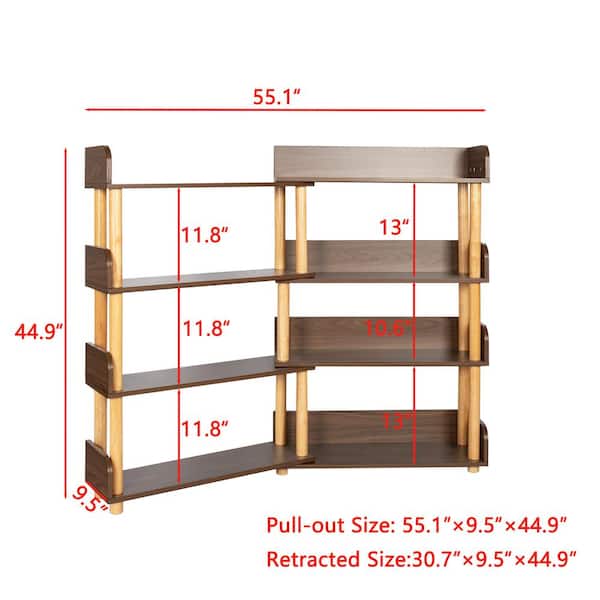 55.1 in. W x 9.5 in. D Walnut 4-Tier Retractable and Rotatable Decorative Wall Shelf : Maximize Space w/ Rustic Elegance