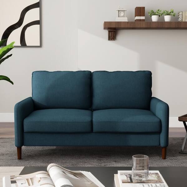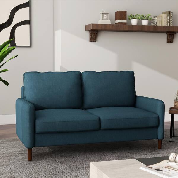 55.5 in. W Modern Straight Arm Linen Fabric Dark Blue Upholstered Loveseat Sofa With Wood Leg