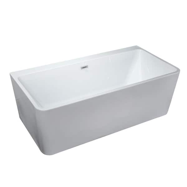 55 in. Acrylic Freestanding Flatbottom Non-Whirlpool Soaking Bathtub in White