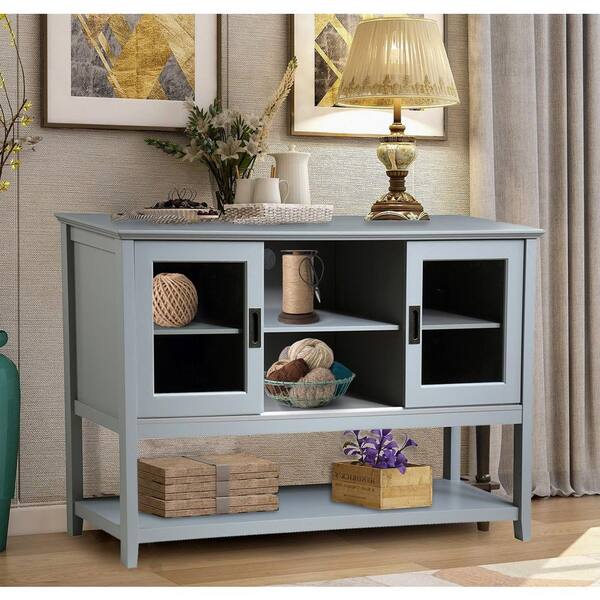 55 in. Gray TV Stand Console Table with Sliding Doors and Cable Management Holes Fits TV's Up to 55 in.