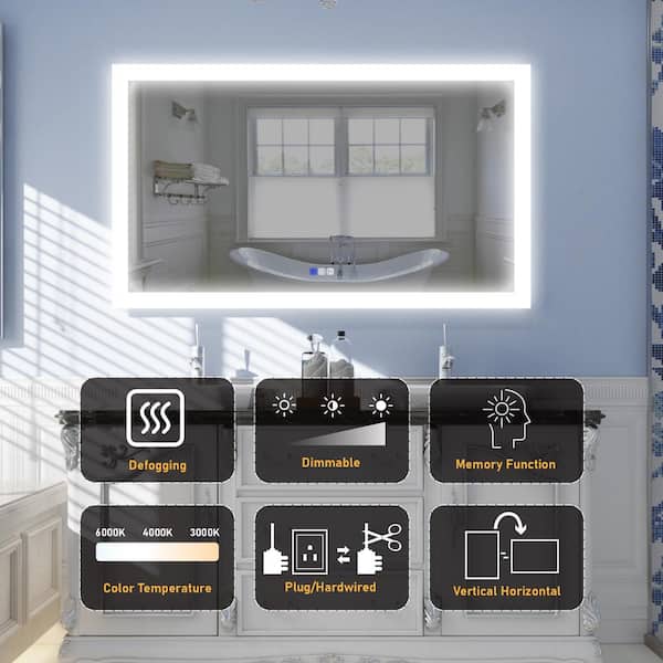 55 in. W x 32 in. H Rectangular Frameless Lighted Anti-Fog Wall Bathroom Vanity Mirror with Dual Row LED Front Light