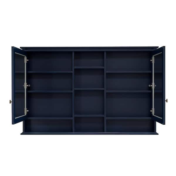 55 in. W x 35 in. H Rectangular Solid Wood Bathroom Medicine Cabinet with Mirror, 2-Soft-Closed Doors, Shelf, Blue
