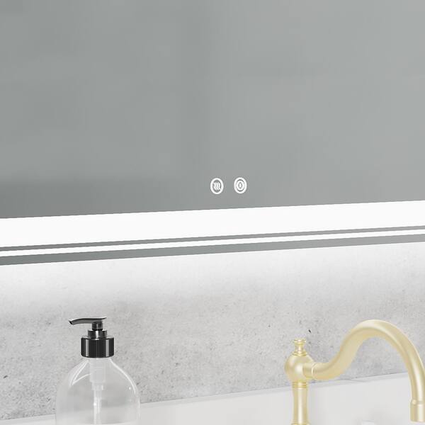 55 in. W x 36 in. H Rectangular Frameless Wall Mount Bathroom Vanity Mirror with Front and Backlit Lighted Anti Fog