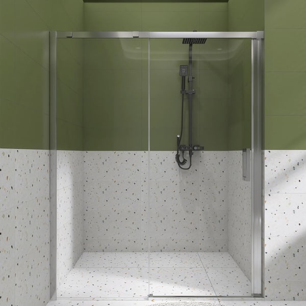 55 in. W x 74 in. H Sliding Framed Shower Door in Chrome Finish with Clear Finish