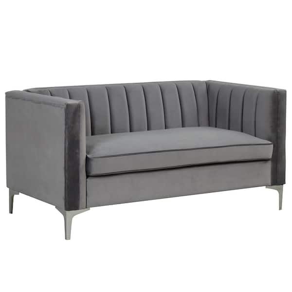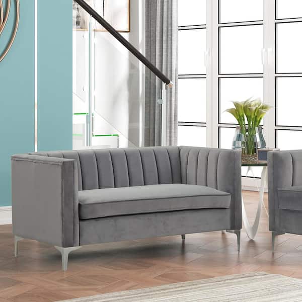 55 in. Wide Mid-Century Channel Tufted Velvet 2-Seater Sofa Couch Loveseat in Gray