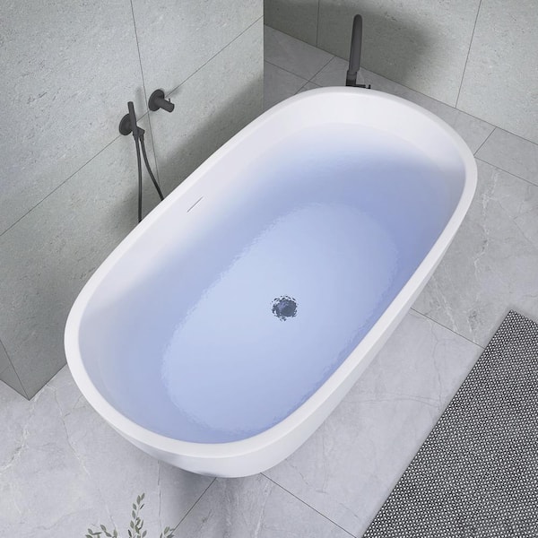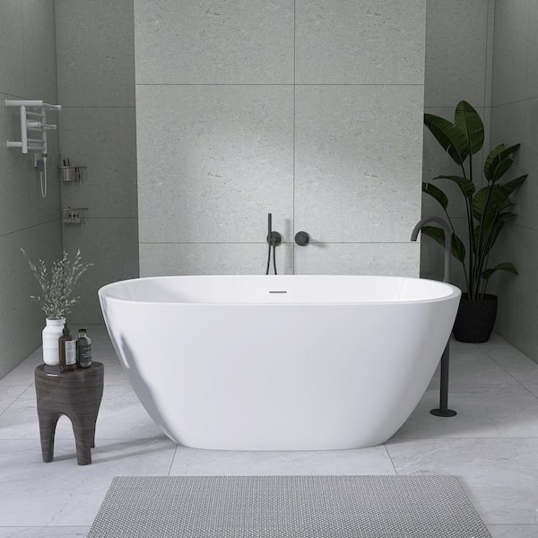 55 in. x 29.5 in. Acrylic Free Standing Soaking Flat Bottom Bathtub Freestanding Bathtub with Center Drain in White