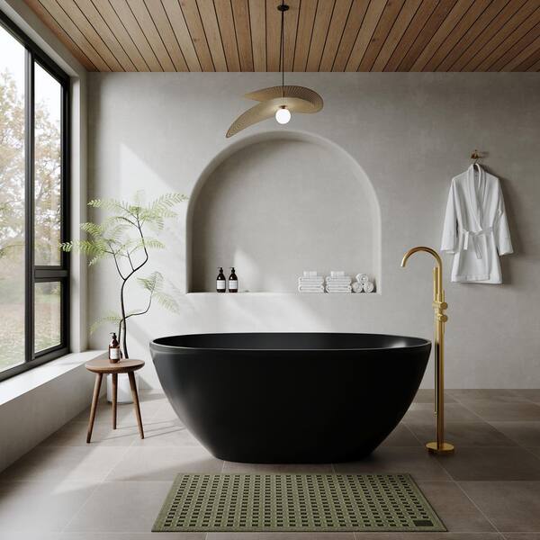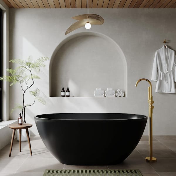 55 in. x 29.5 in. Stone Resin Solid Surface Freestanding Soaking Bathtub with Center Drain in Matte Black