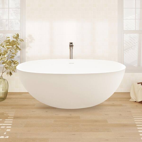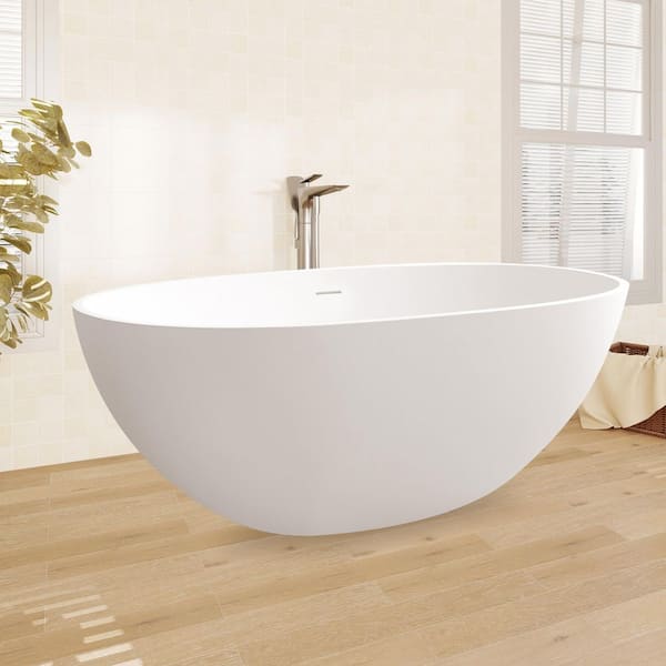 55 in. x 29 in. Solid Surface Flatbottom Soaking Bathtub with Center Drain in White