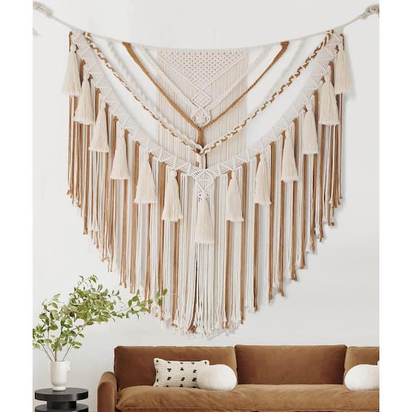 55 in. x 47 in. Large Brown Macrame Wall Hanging-Boho Cotton Yarn Wall Art