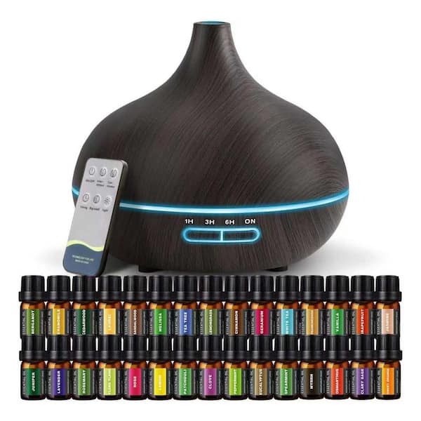 550ml Ultrasonic Essential Oil Diffuser Set with 30 Natural Essential Oils Remote Control Night Light Home