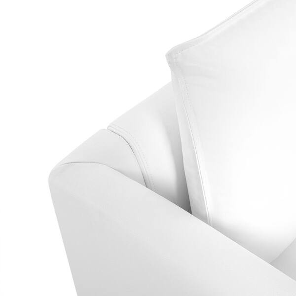 56.1 in. Straight Arm 2-piece Faux Leather Rectangle Sectional Sofa in. Bright White with Ottoman for Living Room