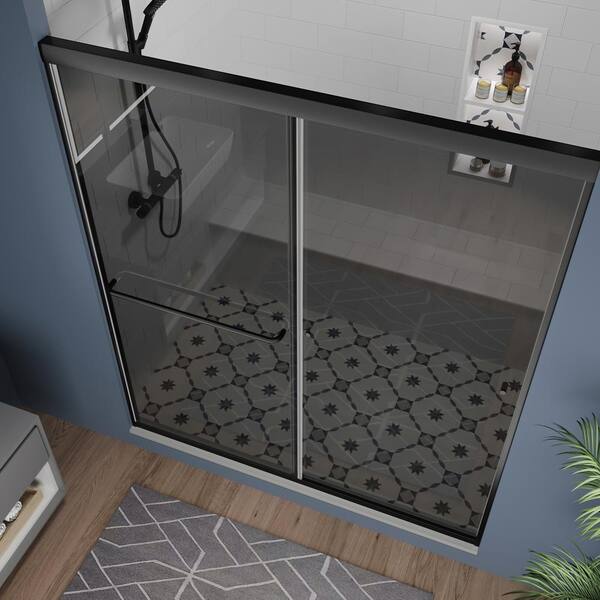 56-60 in. W x 70 in. H Sliding Framed Shower Door in Matte Black with 1/4 in. (6 mm) Gray Tinted Glass