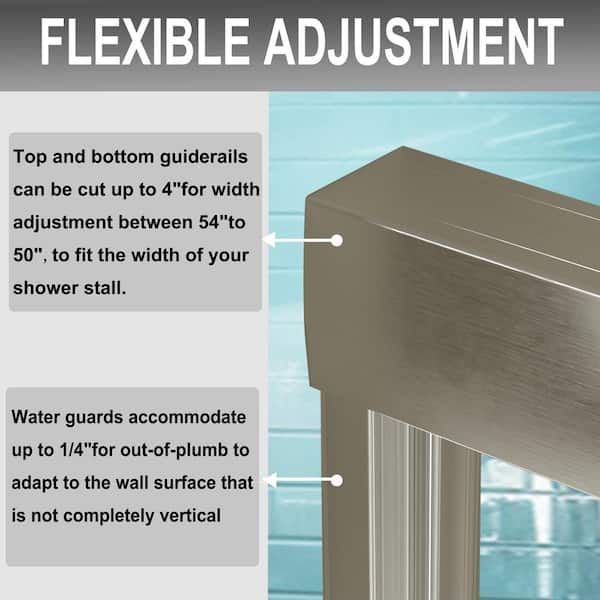 56-60 in. W x 72 in. H Semi-Frameless Sliding Glass Shower Door in Chrome Finish With 1/4 in.(6mm) Clear Tempered Glass