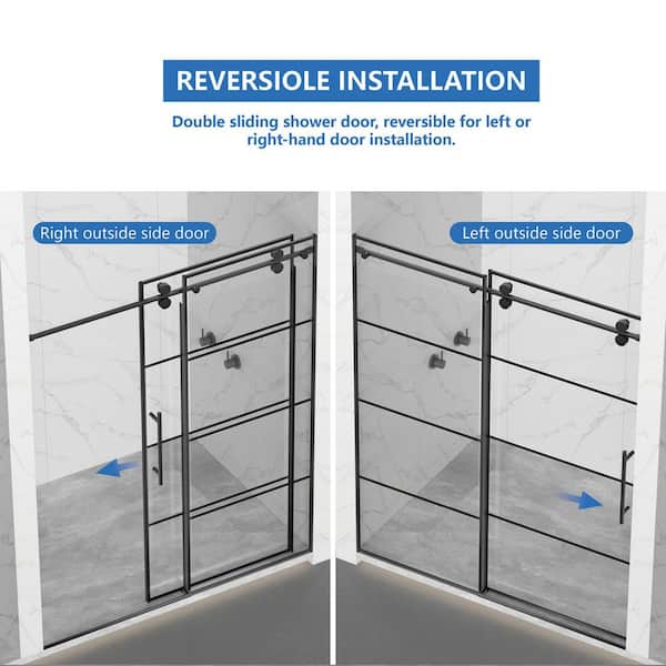 56-60 in. W. x 72 in H Sliding Frameless Soft-Close Shower Door in Matte Black Grid with 8mm Clear Glass