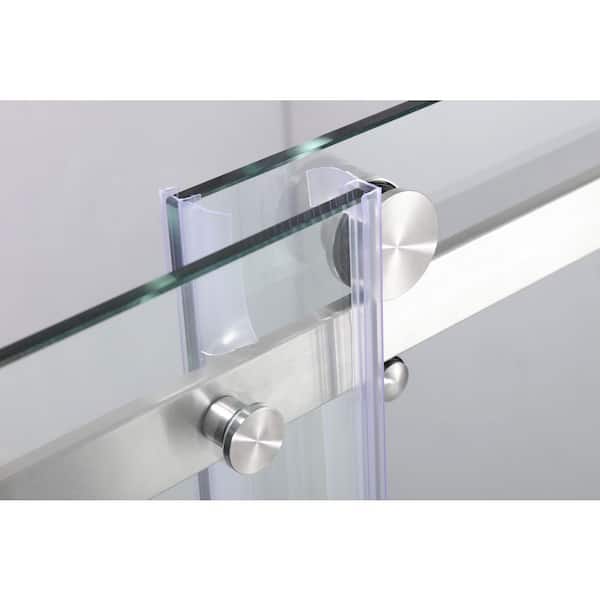 56-60 in. x 76 in. H Frameless Sliding Bathtub Door, 3/8 in. Clear Tempered Glass, Brushed Nickel Finish, Square Rail