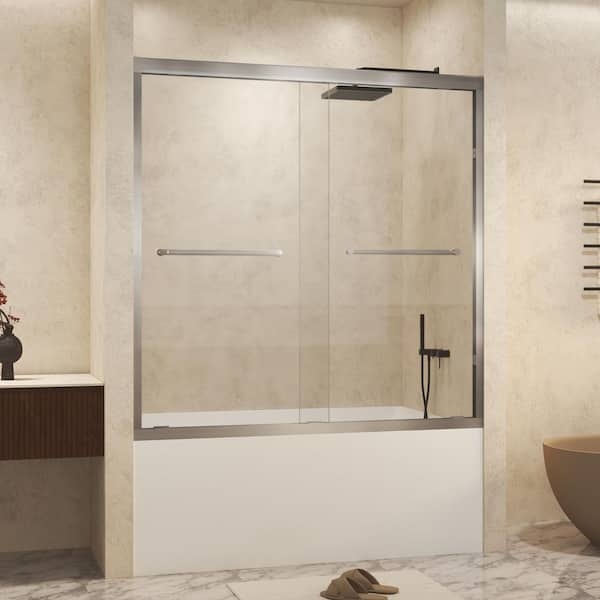 56 in.-60 in. W x 60 in. H Semi-Frameless Sliding Tub Door in Brushed Nickel Finish with 1/4 in. (6mm) Clear Glass