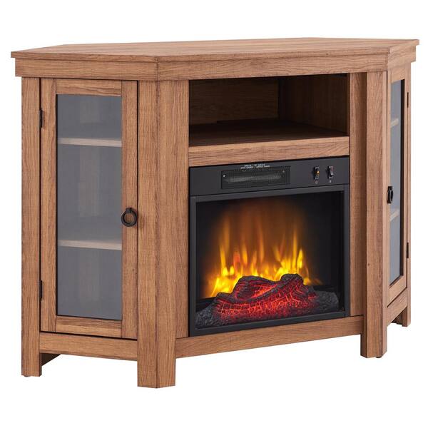 56 in. Corner Media Electric Fireplace in Rustic Barn Wood