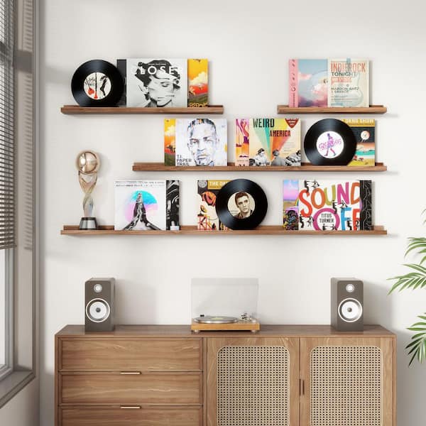 56 in. W x 4.7 in. D Walnut Decorative Wall Shelf (Set-2)