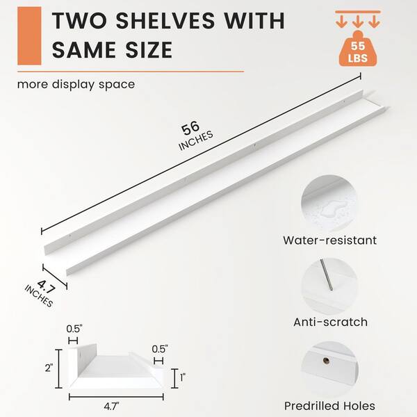 56 in. W x 4.7 in. D White Decorative Wall Shelf (Set of 2)