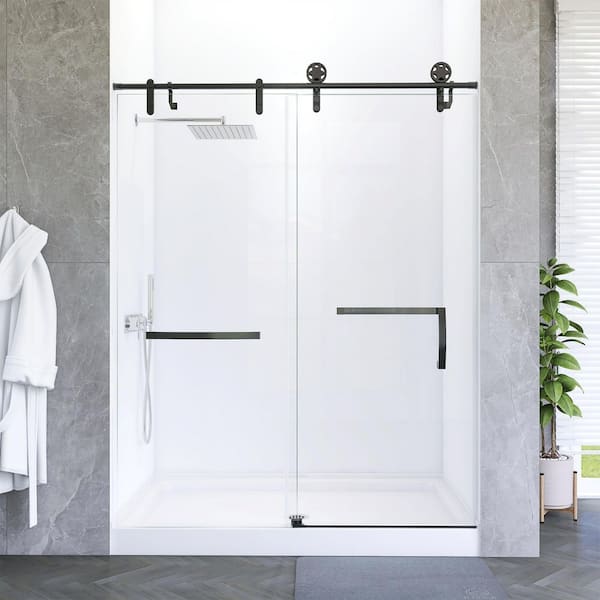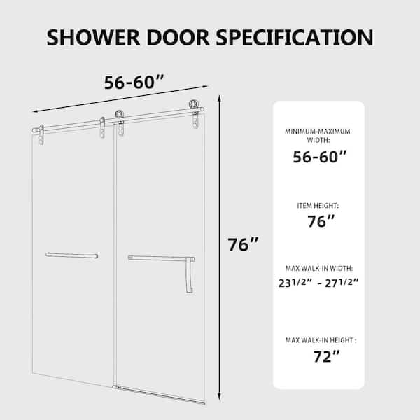 56 to 60 in. W x 76 in. H Single Sliding Frameless Matte Black Shower Door with Single Explosion-Proof Film Clear Glass