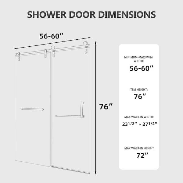 • 60 x 76 in. frameless shower door with 4 in. width adjustable