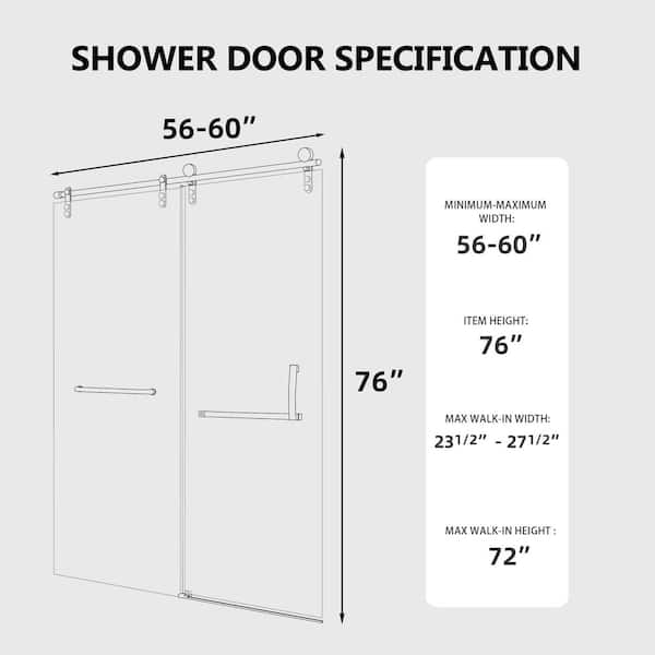 • 60 x 76 in. frameless shower door with 4 in. width adjustable