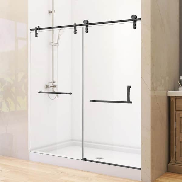 56 to 60 in. W x 76 in. H Single Sliding Frameless Shower Door in Matte Black with 0.31 in. Tempered Clear Glass