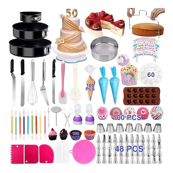 567 PCS Cake Decorating Set with 3 Springform Pans, Rotating Turntable, Icing Tips, Baking Tools for Beginners