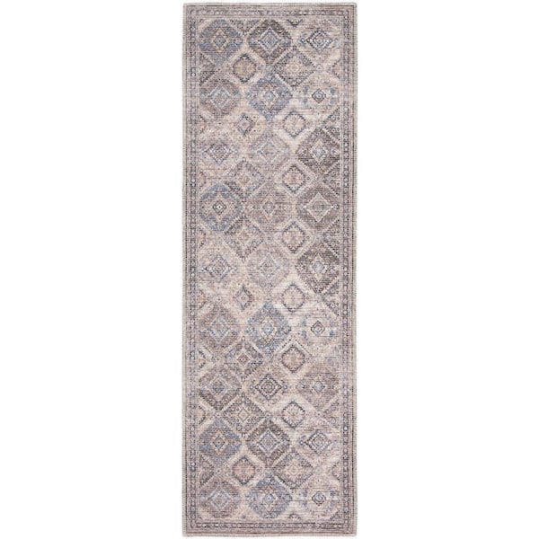 57 Grand Machine Washable Ivory/Latte 2 ft. x 6 ft. Bordered Transitional Kitchen Runner Area Rug