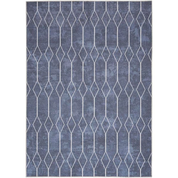 57 Grand Machine Washable Navy 5 ft. x 7 ft. Geometric Contemporary Area Rug