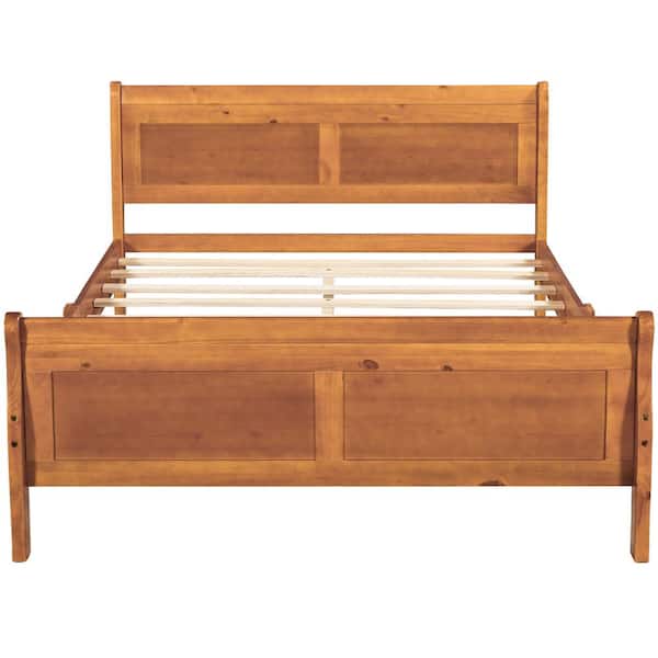 57 in. W Full Size Oak Medium Wood Platform Bed Frame with Headboard and Wood Support Slats, No Box Spring Needed