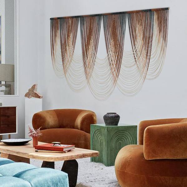 57 in. x 41 in. Large Cotton Macrame Wall Hanging-Brown Dip-Dyed Boho Decor