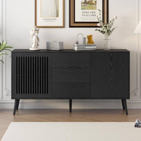 58 in. W x 16 in. D x 32 in. H Black Linen Cabinet, Modern Cabinet with 2-Doors&3-Drawers for Living Rooms, Side Cabinet
