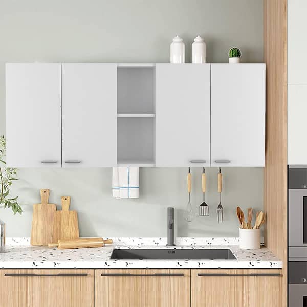 59.05 in. W x 12.4 in. D x 23.62 in. H Kitchen Bathroom Storage Wall Cabinet with Double Door in White